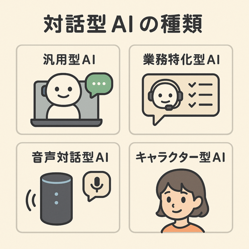対話型AIにはいくつかのタイプがあり、使い方によって向き不向きがあります。