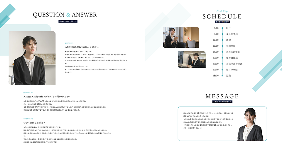 社員インタビューは、基本情報以外で企業を深く理解してもらうための有効な手段です。また統一した情報が多い中、他社と差別化できる重要なコンテンツになります。