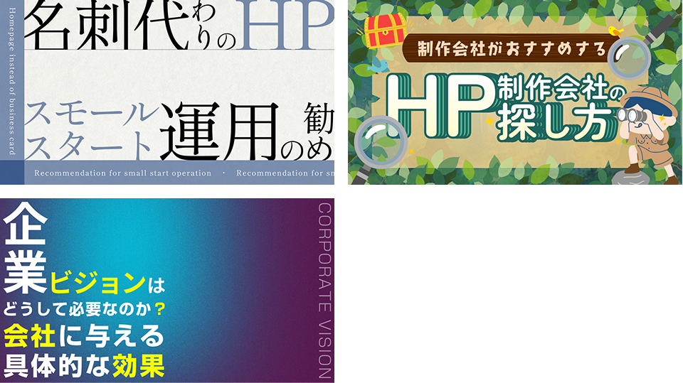 デザイナーのH.Sです。今みなさんが読んでくださっているブログのサムネイルはアートバイブスのデザイナーが作っています!最近は後輩デザイナーも作っているので私だけではないですが、今回は私が作ったサムネイルのなかでうまく出来たかも?!と思ったものや気に入っているサムネイルを紹介していきたいと思います。思いっきり自己評価ですのでよろしければ読んでください。