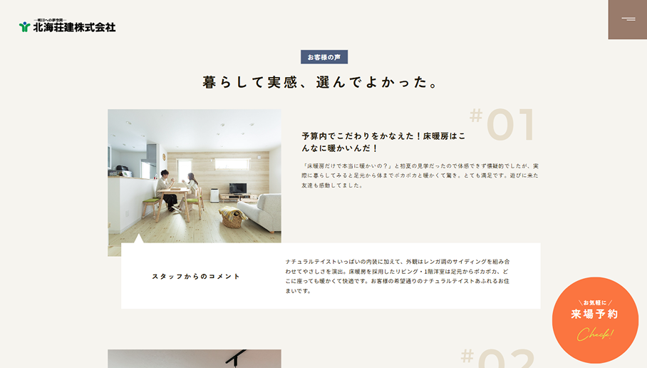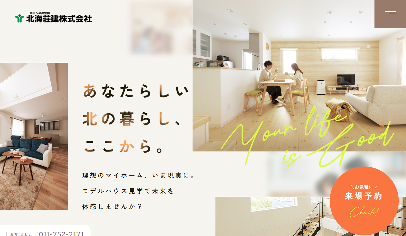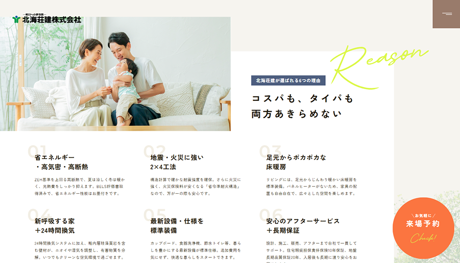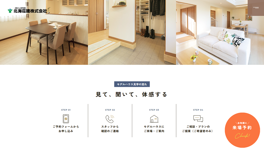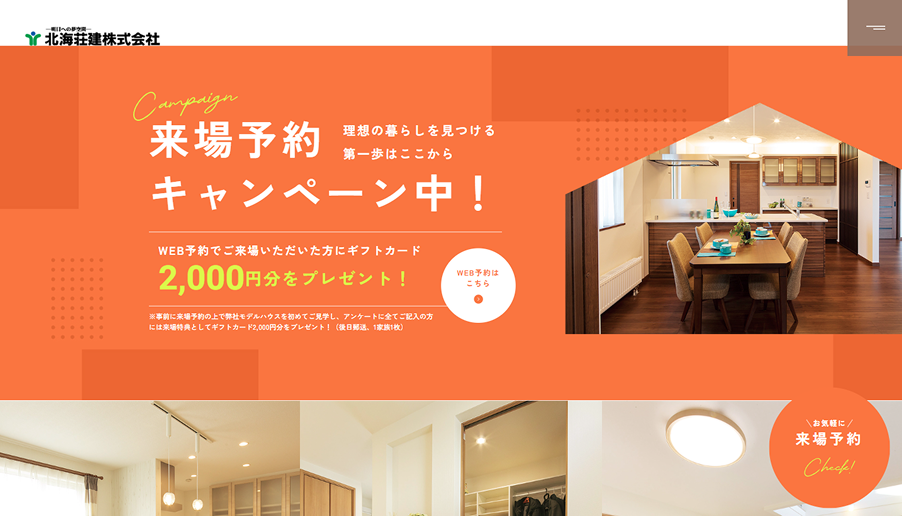 理想の暮らしを思い描きながら、自然とアクションにつながるようなLPを設計しました。メインビジュアルやコピーは温かみのあるトーンで統一し、若い層・女性へ親しみやすい雰囲気を重視。さらに、来場予約につながる「来場予約ぺージ」を新設し、スマートフォンからも直感的に入力できるようにしました。閲覧者の不安や疑問に寄り添いながら、安心して申し込める流れを構築しています。