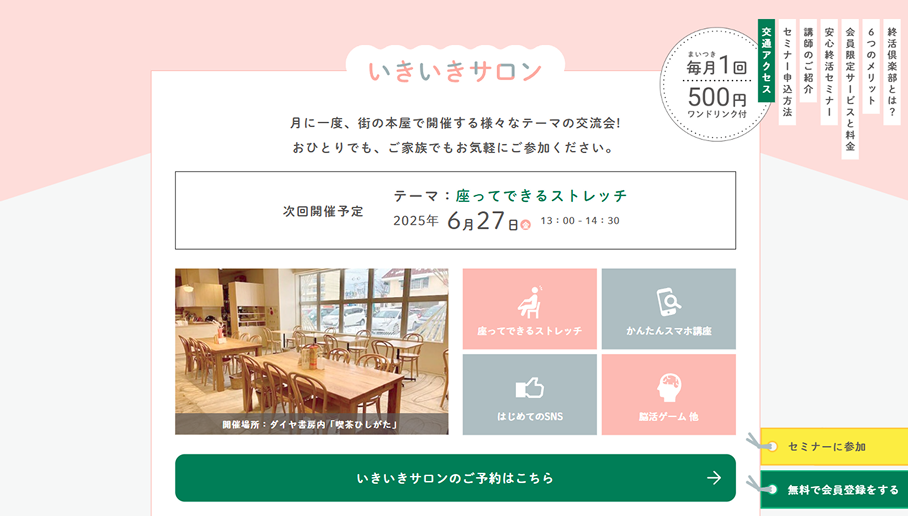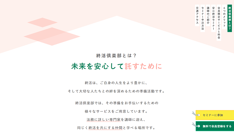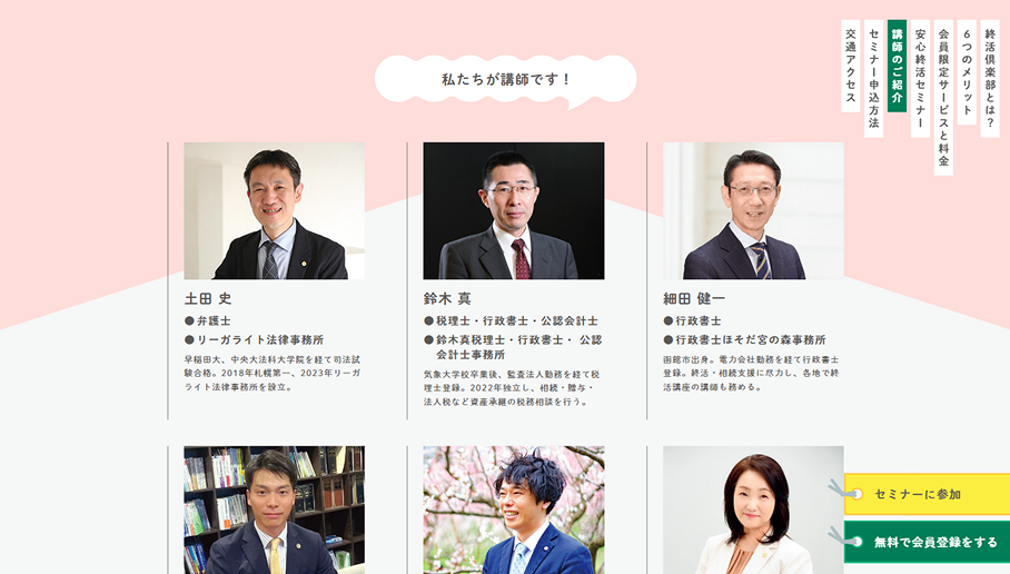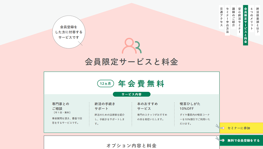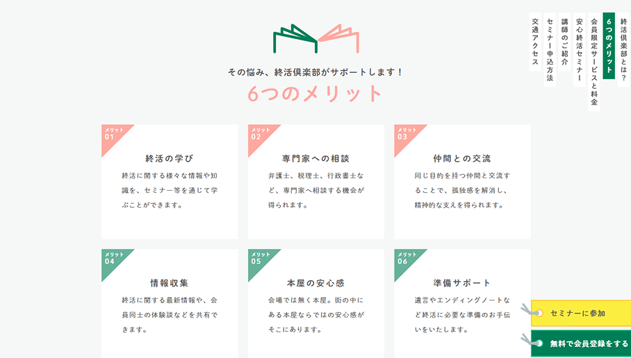 新規事業としてスタートした「街の本屋の終活倶楽部」。 これまで店舗でのご案内が中心でしたが、もっと多くの方へ寄り添いたいというご希望から WEBでの情報発信と申し込み受付の仕組みづくりをお手伝いしました。