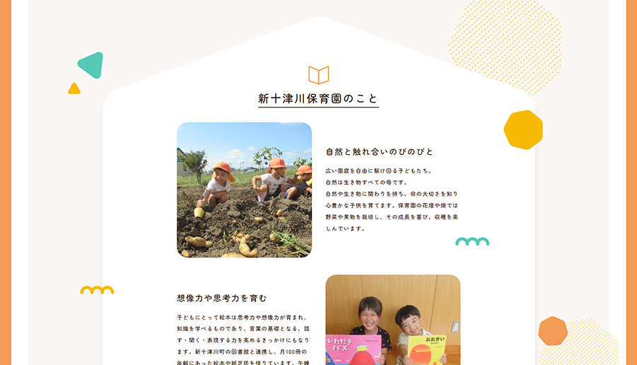 ターゲット層である園児の保護者様が閲覧されることを想定して、スマートフォン、タブレットでの見やすさを意識してデザインしています。管理される先生のご負担も減らせるよう、更新のしやすさにもこだわり、見た目の親しみやすさとサイトの使いやすさを両立させたコンテンツになりました。